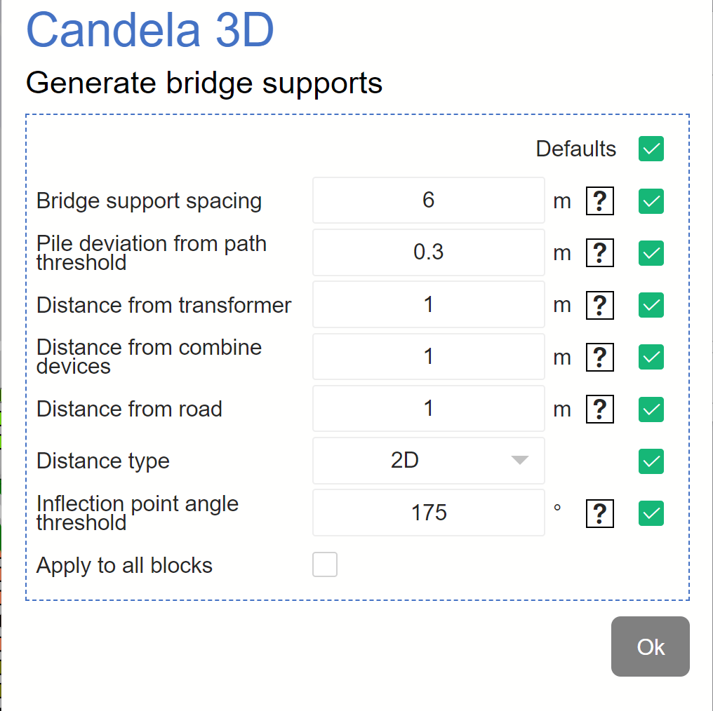 The Candela3D software can automatically generate cable tray stakes based on the settings. The settings interface is as follows:
